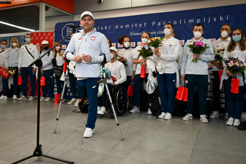 To była jedna z najdłuższych podróży w życiu paraolimpijczyków, bo w sumie trwała blisko 40 godzin. Polacy ruszyli w podróż 15 marca ok. 5 rano, i po przystankach w Seulu i w Paryżu dotarli ostatecznie do Warszawy. Na lotnisku im. Fryderyka Chopina zostali ciepło przywitani przez zgromadzonych kibiców i media. Wśród gości honorowych konferencji znaleźli się przedstawiciele Ambasady Chin. Jako pierwszy podczas konferencji prasowej głos zabrał prezes Łukasz Szeliga, który odniósł najpierw do atmosfery panującej na igrzyskach oraz decyzji IPC, która ostatecznie wykluczyła z igrzysk reprezentantów Rosji i Białorusi.