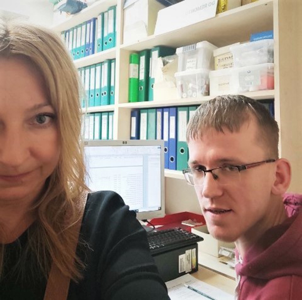 Na zdjęciu Pan Michał – uczestnik projektu oraz Pani Renata Czeronko, pośrednik pracy z ORK w Nałęczowie